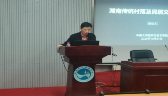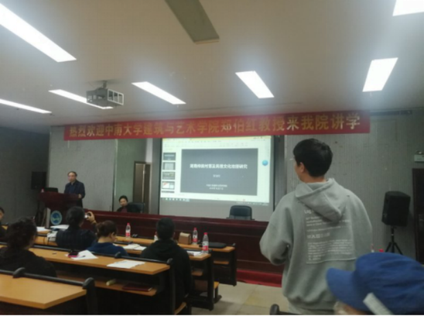 10月31日晚,中南大学建筑与艺术学院郑伯红教授在逸夫楼报告厅为太阳成官网师生做了《湖南传统村落景观的文化地理研究》的报告,校教师发展中心主任毛攀云教授,美术与设计学院学院副院长陆序彦教授及环境设计教研室全体师生参加了此次讲座,讲座由陆序彦主持。