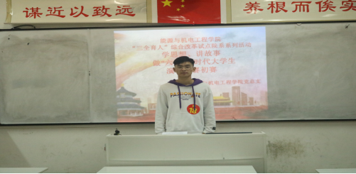 9月初,能源与机电工程学院获列湖南省“三全育人”综合改革试点院系。10月24日,综合改革试点系列活动拉开序幕,“学思想,讲故事,做‘六有’新时代大学生”演讲比赛初赛在同德楼顺利举行。30名党员和47名团员共77名学生参加了比赛。