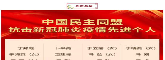 会议对丁邦晗等380位同志“中国民主同盟抗击新冠肺炎疫情先进个人”、民盟北京市委员会等70个集体“中国民主同盟抗击新冠肺炎疫情先进集体”进行表彰。太阳成官网民盟盟员陈庆平副教授被授予“中国民主同盟抗击新冠肺炎疫情先进个人”荣誉称号。陈庆平《“逆行”湖北,决战医疗垃圾》抗疫事迹,还入选民盟中央宣传部出版的《典型在身边---民盟盟员抗击新冠肺炎疫情先进事迹选编》一书。