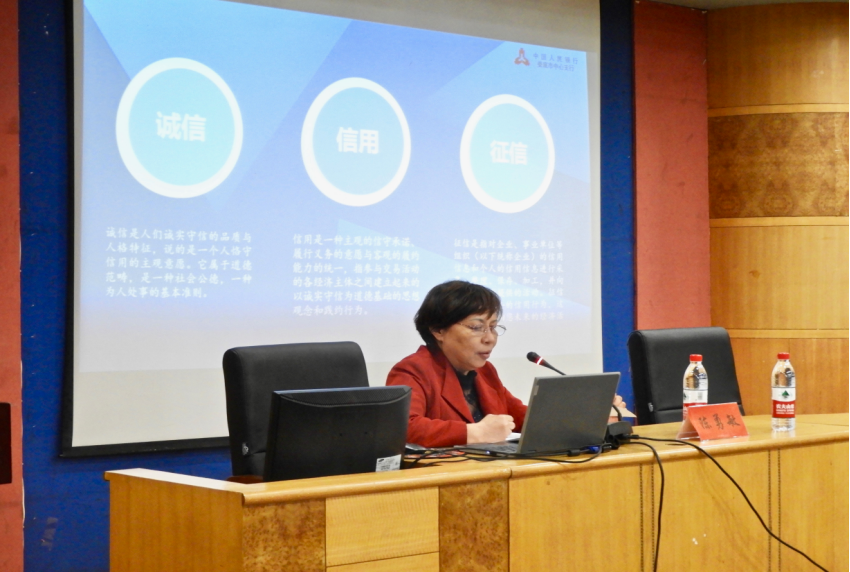 人民银行娄底市中心支行征信管理科科长陈勇敏为师生讲解征信知识