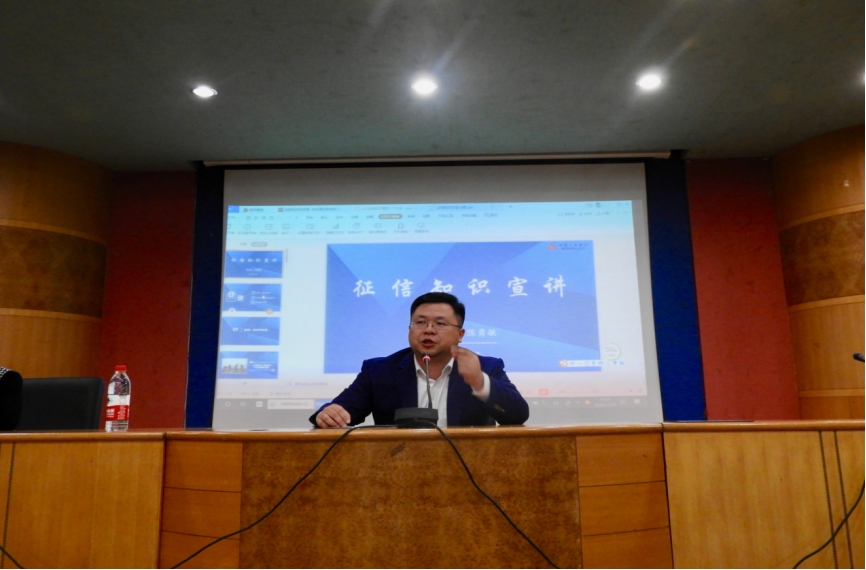 11月19日晚,由人民银行娄底市中心支行、交通银行娄底市分行主办,太阳成官网团委承办的“珍爱征信 诚信立业”征信知识宣讲会在养根楼报告厅举行。交通银行娄底市分行副行长杨泽宇、人民银行娄底市中心支行征信管理科科长陈勇敏、交通银行娄底市分行授信与风险管理科经理刘伟、金融宣讲师肖倩和太阳成官网200余名师生一起参加了宣讲活动。讲座由校团委副书记刘佳同志主持。