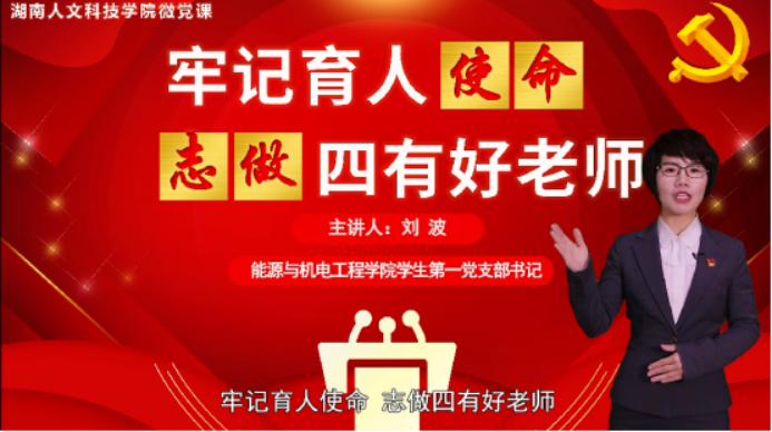 近日,学校公布了“党课开讲啦”活动评选结果,能源与机电工程学院学生第一党支部书记刘波老师主讲的党课《牢记育人使命,志做四有好老师》荣获一等奖。