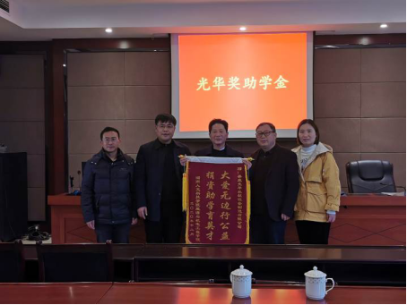 颁奖仪式后,学院领导向娄底光华机械设备制造有限公司赠送书写“大爱无边行公益,捐资助学育英才”的锦旗。谢常清代表学院感谢谢平光先生一直以来对母校教育事业的支持,表示将不负校友对母校的期待,牢记初心使命,奋发担当作为,坚持全面落实立德树人根本任务,为国家培养更多的社会主义建设者和接班人。