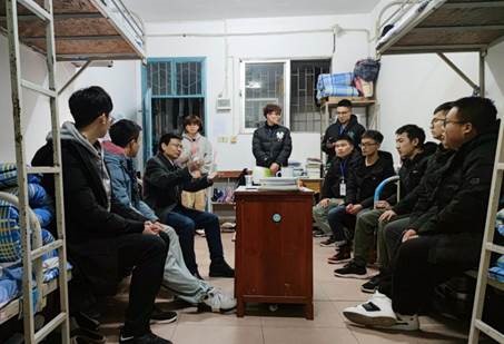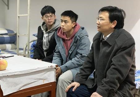 为进一步指导大一新生深入学习党的十九届五中全会精神,并帮助解决他们生活学习上遇到的困难,12月30日晚九点半,副校长陈志国、计划财务处处长郭育青、副处长陈作勤、副处长王卫一、国际交流与合作处处长蒋冰清、副处长黄敏以及材环学院党政领导班子成员来到大一新生寝室,开展“三联系”活动,与学生们沟通交流,解读五中全会精神,倾听他们心声,了解他们生活和学习情况,帮助学生更好地适应学校,提升学业,健康成长。