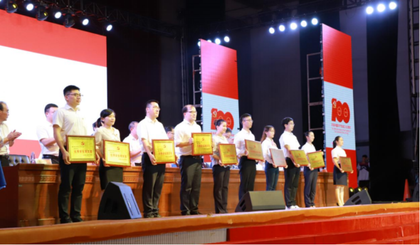 “新党员宣誓,老党员重温入党誓词”环节将大会推向高潮。在刘和云书记的带领下,全场党员举起右手握拳,面向党旗,庄严宣誓。在激昂的《国际歌》歌声中,总结表彰大会落下帷幕。
