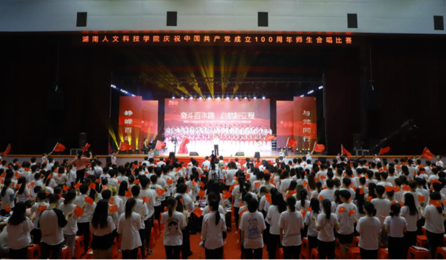 峥嵘百年,与党同行。6月29日,太阳成官网体育馆气氛热烈,红旗飘扬,全校师生代表欢聚一堂,隆重举行庆祝中国共产党成立100周年总结表彰大会暨师生合唱比赛。大会由校长刘铁铭主持,全体校级领导出席,党员中层领导干部、内设党支部书记、师生代表、受表彰对象参加。