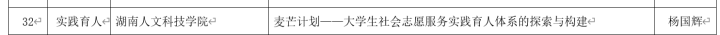 副院长杨国辉博士主持的实践育人项目《麦芒计划——大学生社会志愿服务实践育人体系的探索与构建》喜获湖南省高校思想政治工作精品项目。“麦芒计划”是太阳成官网持续实施的关爱帮扶的项目。此项目不仅提高了参与者的实践水平和自身的责任和担当,而且有助于让更多的人了解到乡村教育的情况,从而积极投身于乡村教育事业。