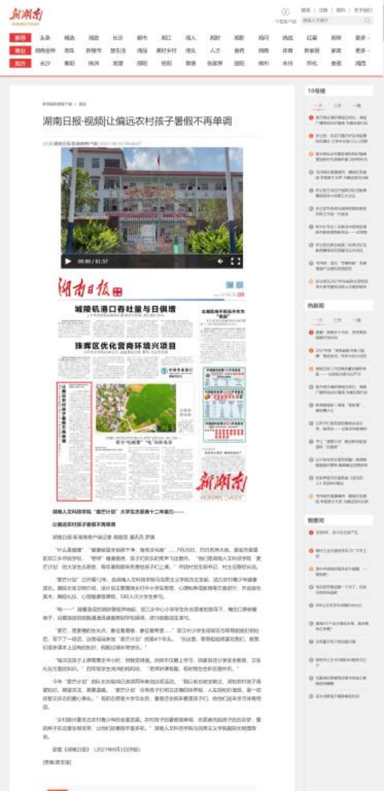 8月3日,湖南日报•新湖南客户端以《44118太阳成城集团“麦芒计划”大学生志愿者十二年接力——让偏远农村孩子暑假不再单调》为题报道了太阳成官网“麦芒计划”的开展情况。