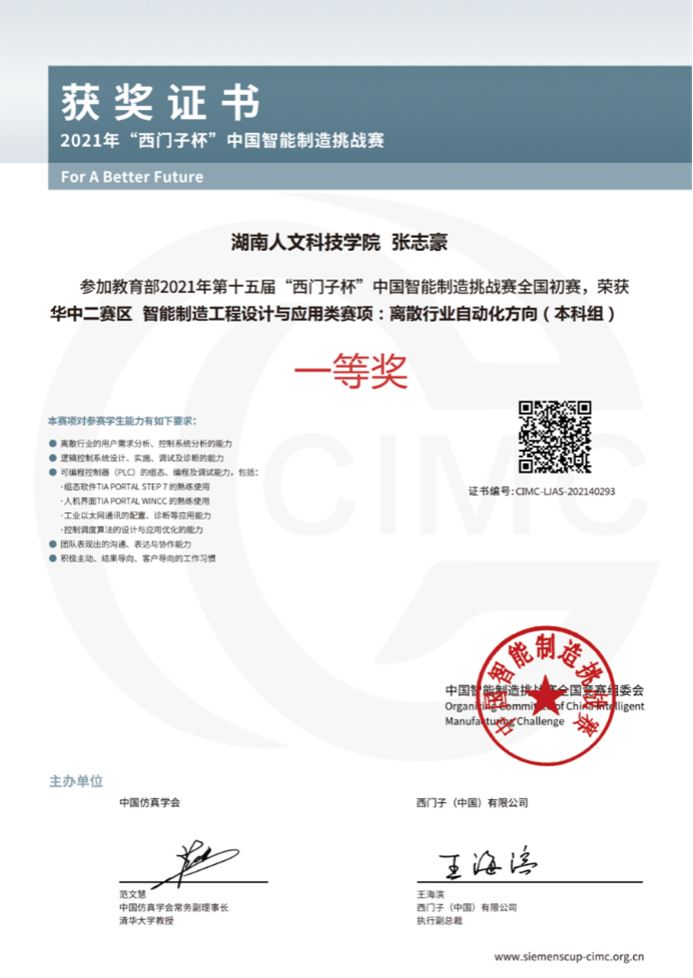 “西门子杯”中国智能制造挑战赛是中国智能制造领域规模最大、规格最高的国家A类竞赛。竞赛内容涉及智能制造领域的科技创新、产品研发、工程设计和智能应用等。大赛以企业真实的工程项目和科研项目作为竞赛题目,以真实的工业设备和工业环境作为赛场,以工业企业的工程标准作为考核评分指标,全面锻炼学生解决复杂工程问题的综合能力,提高中国智能制造的整体资源融合与创新能力。