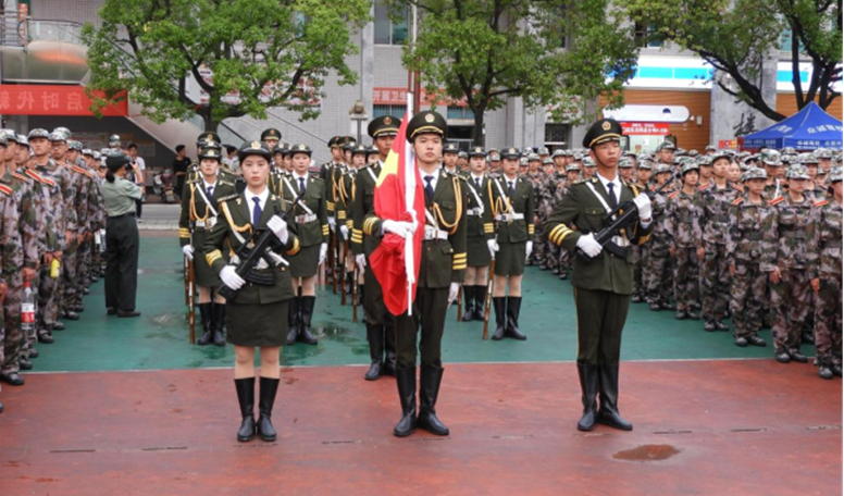 军训教官代表黄显耀带领全体新生在国旗下庄严宣誓:请党放心,强国有我!铿锵有力的话语彰显了拳拳爱国心。