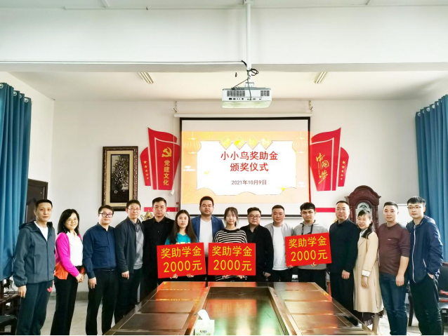 “小小鸟”奖助学金是湖南省小小鸟电子科技有限公司响应电子商务专业资助育人号召而发起设立的,旨在精准资助品学兼优的家庭困难学生。公司董事长周俊、总经理吴俊华、短视频运营总监阳海军、新化县电子商务协会秘书长杨青山等为电子商务专业学子唐璇、雷梦蝶、陈德荣颁发奖助学金。