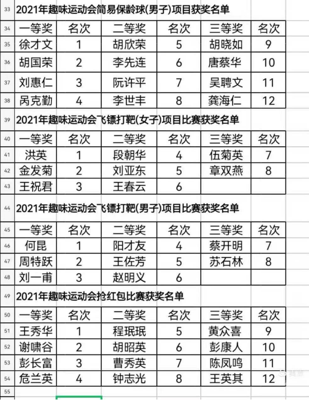 运动会设“简易保龄球”、“手榴弹掷准”、“乒乓球原地投篮”、“飞镖打靶”、“抢红包”和“猜谜语”六个比赛项目。这些项目融趣味性和竞争性于一体,特别适合老同志。老人们参与热情高,老友别后重逢,相互真诚问候,节日气氛浓烈,运动快乐洋溢......加油声、呐喊声、欢笑声荡漾在比赛场地。