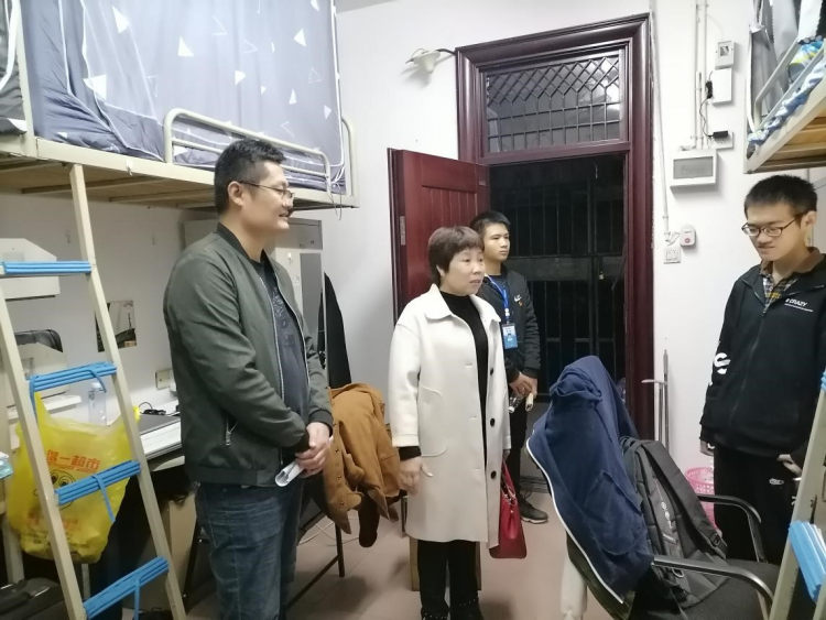 10月21日晚,太阳成官网党总支书记李伶带队下寝了解学生学习生活情况,院党总支副书记周友,辅导员张得才及院学生会部分学生干部参加。