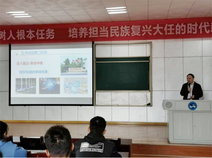 随后,李清贤详细阐述了焊接的发展历史及分类,并结合图片、动画及视频等素材重点阐释了电阻焊、铝热焊、等离子弧焊、电渣焊、螺栓焊、摩擦焊、爆炸焊、电子束焊和搅拌摩擦焊等焊接工艺的原理及应用,以及先进的焊接专机、焊接机器人工作站、机器人焊接生产线及电弧熔丝增材制造系统。通过讲解焊接在高铁、桥梁、核电站、交通工具、工程机械、石油储罐、航空航天等领域的应用,生动阐释了焊接领域的“大国工匠”精神。最后,李清贤勉励大家,只要大家学好专业知识,以后在焊接生产制造企业(主机厂和配套厂)、焊接配套商(焊接电源、焊接材料、焊接辅具、焊接专机、焊接、焊接自动化、焊接防护用品等)或焊接服务商(科研院所、大学、职业技校、培训基地、行业管理和服务部门)中必将大有作为。