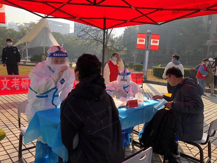 (医护人员为考研学子做核酸检测)