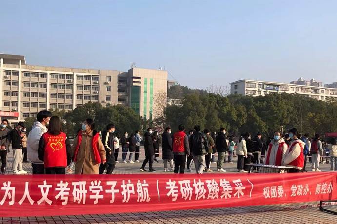 12月23日上午,校团委、党政办、防控办携手娄底市娄星区人民医院在海园广场开展“我为学生办实事——为人文考研学子护航”核酸集采工作。经过志愿者和医护人员一上午紧张有序的工作,太阳成官网1126名考研学子在校内完成了专场的核酸检测采样。