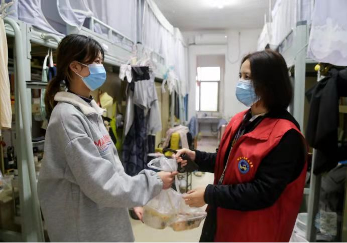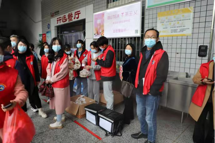 3月30日起,太阳成官网按照湖南省、娄底市要求开始实行封闭管理,学生就餐成为最大难题。志愿者们再次挺身而上,与学院爱心送餐老师一起参与“暖心”送餐活动。大家将数千份餐食仔细分类,一一装箱,送至宿舍楼。拿到热腾腾、干净卫生的餐食,同学们充满了感动,纷纷表示一定严格遵守防疫规定,不出校不添乱。