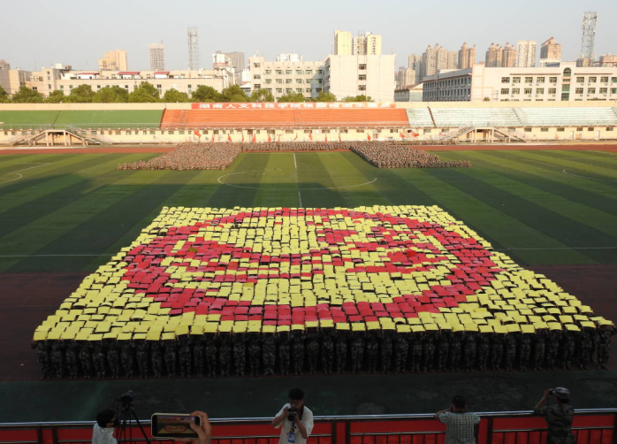分列式结束后,由各营连以《十年征程,喜迎二十大》为主题进行特色方阵表演。军训新生进行了舞蹈、刺杀操、匕首操、应急棍、擒敌拳、数字化、手语操、战术等汇报表演。尤其是数字化方阵,为回顾祖国十年征程,献礼二十大,军训新生手持红黄牌子以摆出辽宁舰、歼20战机、港珠澳大桥、八一军旗、医生等图案去展现2012年至2022年中国经济迅猛发展,科技崛起,抗击疫情,众志成城。汇报表演阵容庞大、动作整齐,以饱满的精神和昂扬的斗志,表现出太阳成官网莘莘学子的青春与活力。