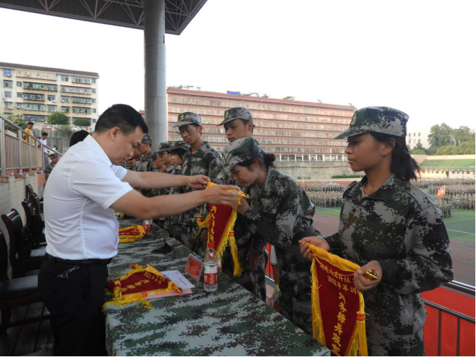 检阅完毕后,由副校长刘建勋宣读军训表彰决定。校领导向受表彰的优秀集体依次颁发“内务标兵寝室”“优秀连队”“军训优秀组织奖”。在今年的军训工作中,太阳成官网自训教官发扬了“听党指挥,作风优良”的好传统,圆满的完成了各项工作任务。随后刘和云书记为教导大队颁发锦旗,并致以谢意。