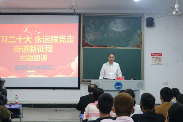 11月2日晚,校长刘铁铭为材料与环境工程学院和美术与设计学院70余名团员青年在致远楼211教室以“学习二十大,永远跟党走,奋进新征程”为主题上了一堂生动的团课。材料与环境工程学院和美术与设计学院的领导班子、辅导员与同学们一起聆听了讲座。