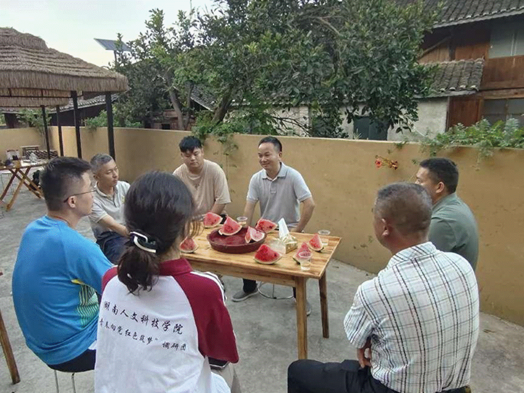 调研过程中,邵阳市绥宁县乐安铺乡党政领导班子一行来到大团村慰问调研团师生,并送来农家的蔬菜、水果等物资。乡党委书记唐钧表示,基层调研助力大学生成长成才,希望调研团能充分发挥大学生“智库”的作用,为大团村的发展建言献策。