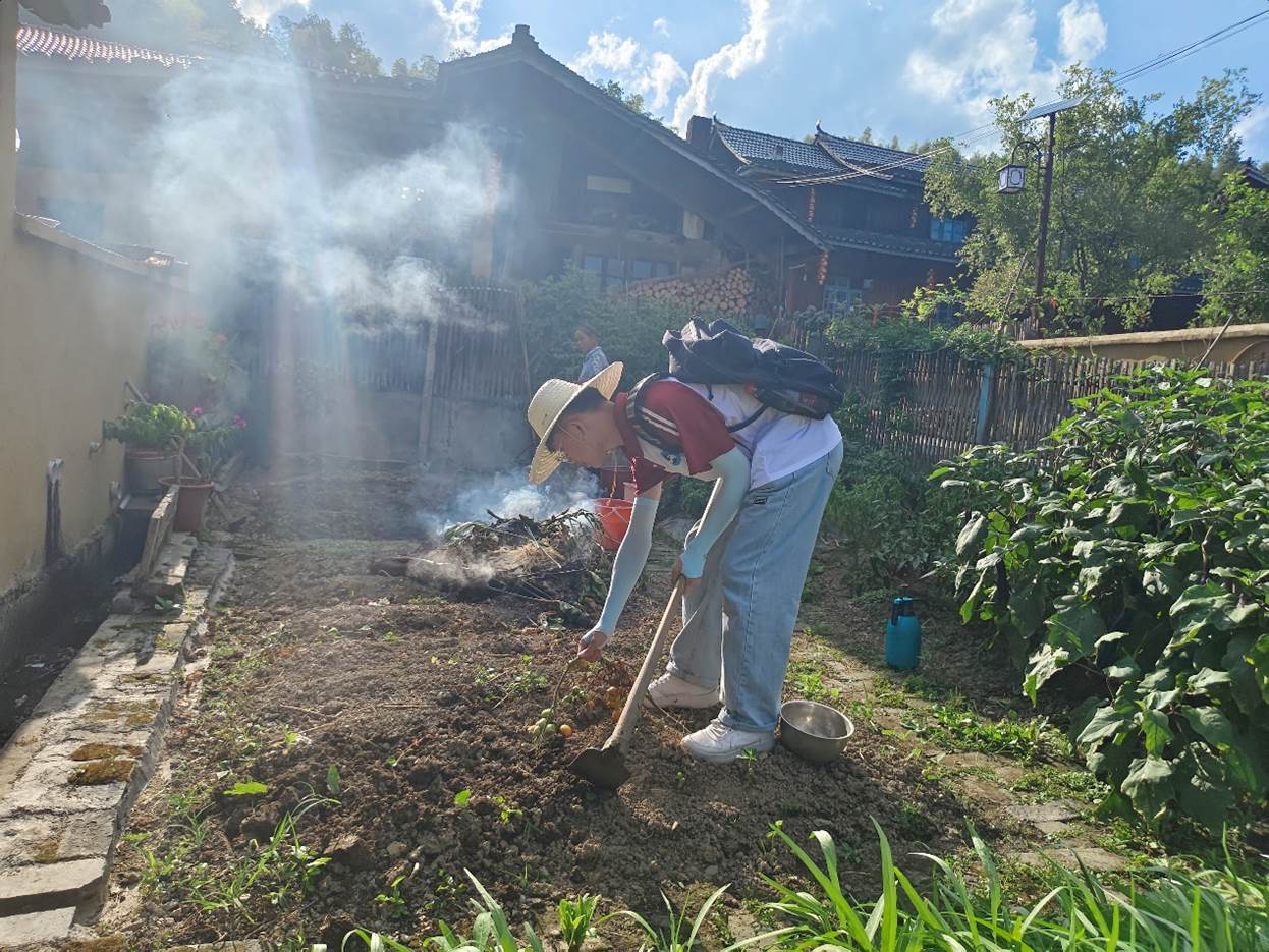 在入户调查过程中,调研团成员热心帮助户主耕作土地、搬运沉重的农产品,在一片其乐融融的氛围中倾听村民对乡村建设现状的真情实感。