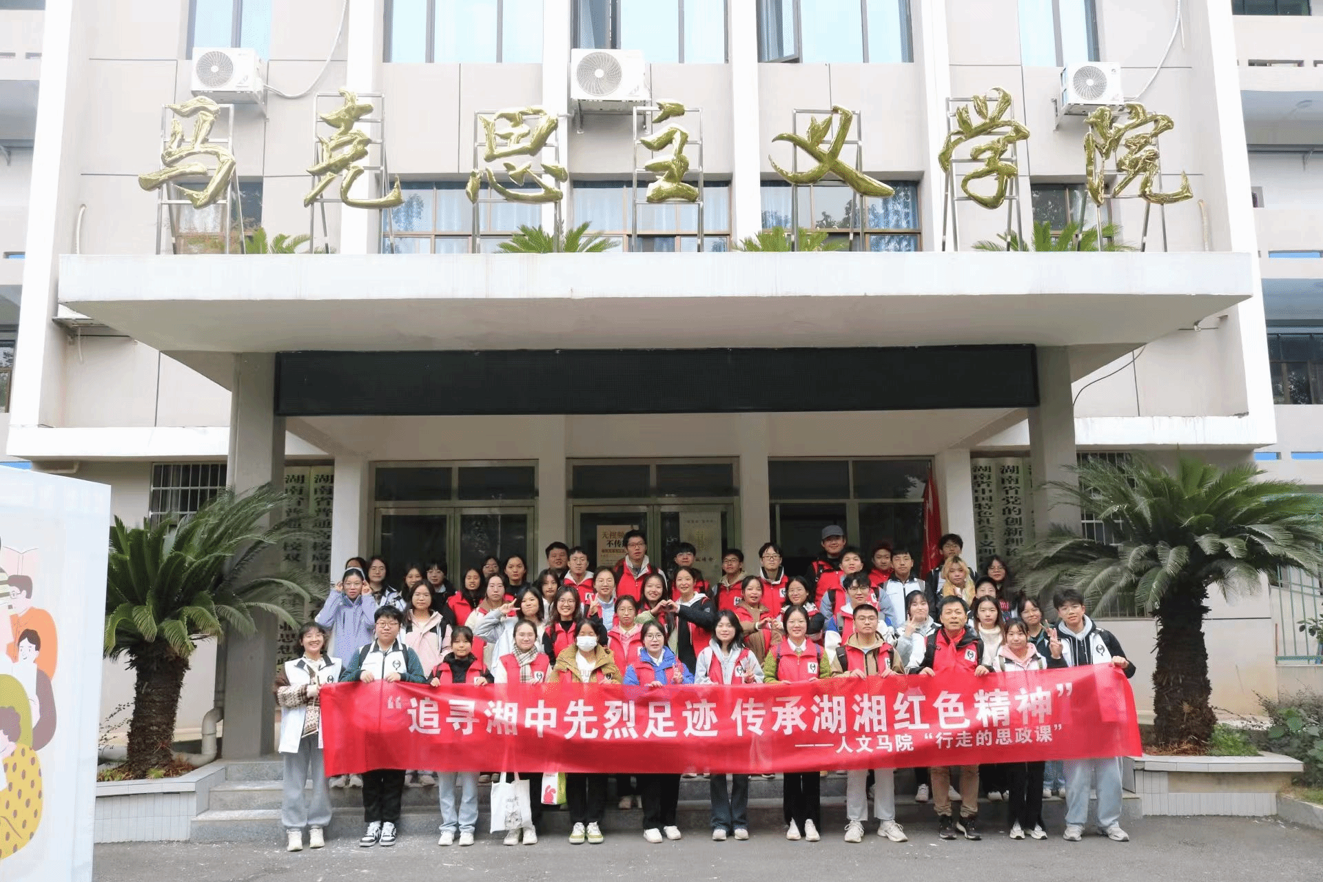 为进一步加强红色文化与革命精神对学生的影响力、感召力,11月26日,马克思主义学院青马读书会在双峰县、衡山县等地组织开展“追思革命先烈 弘扬爱国精神——行走的思政课”主题“暴走”活动。活动由马克思主义学院思政教研室主任谢科峰博士、思政课教师李婉溶、教育学院教师黎任水、体育学院教师蒋治夏等带队。