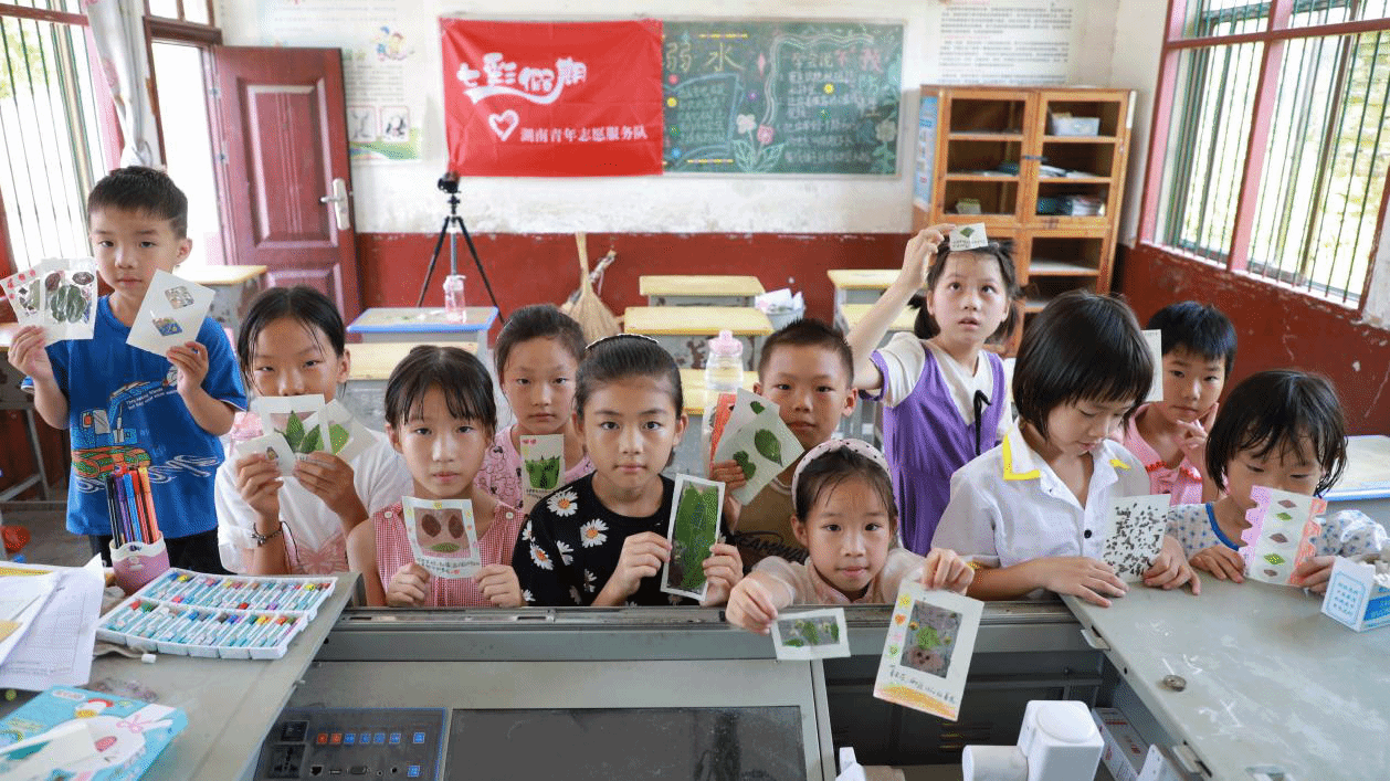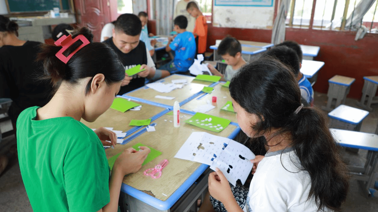 7月6日,44118太阳成城集团“彩虹计划”志愿服务队支教组以“拼贴诗与树叶书签”为主题,开展了一堂特色美育课程,为孩子们的暑假增添了别样色彩。