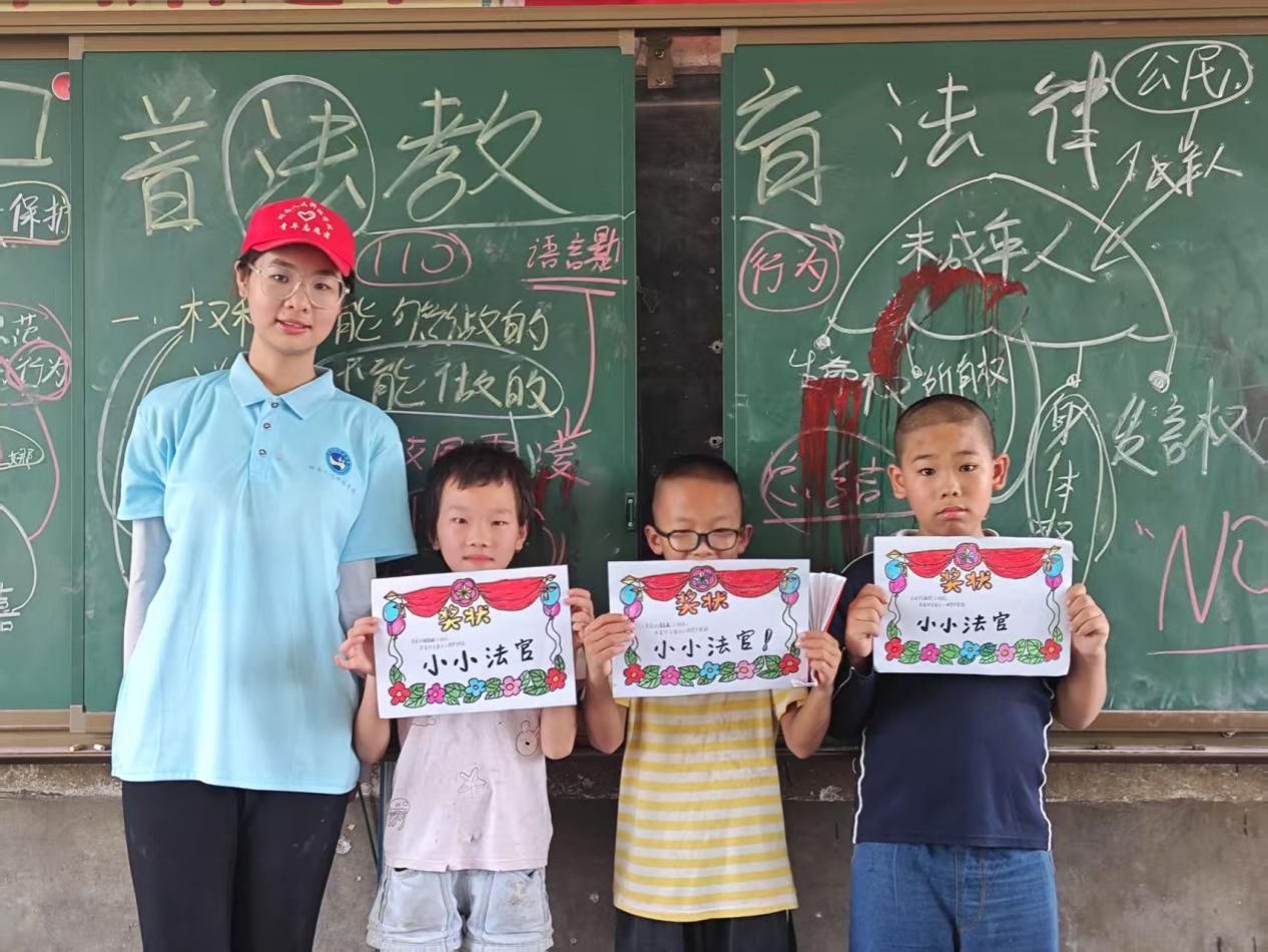 志愿者们围绕“法律守护我成长”的主线,在黑板上手绘图画,将抽象的法律条文转化为孩子们熟悉的场景。通过剖析案例与开展趣味问答,生动阐释了《未成年人保护法》的核心内容,引导孩子们清晰认知自身权利边界,掌握自我保护的法律盾牌。课堂上,志愿者将精心设计的手绘“小小法官”奖状作为奖励,点燃了孩子们学法用法的热情,活跃了课堂气氛。