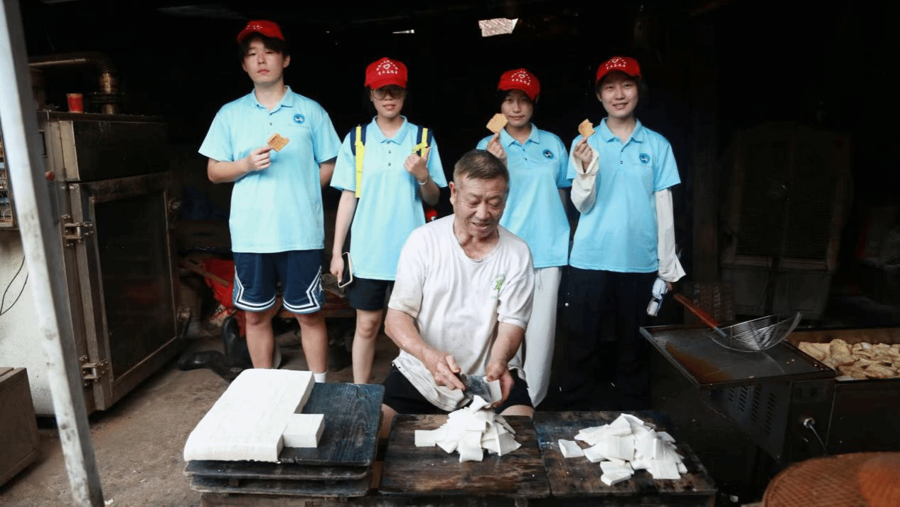 7月7日下午,44118太阳成城集团“彩虹计划”志愿服务队到达灌溪村豆制品加工作坊进行实地调研,了解当地特色食品加工,并与当地村民进行深入交流。