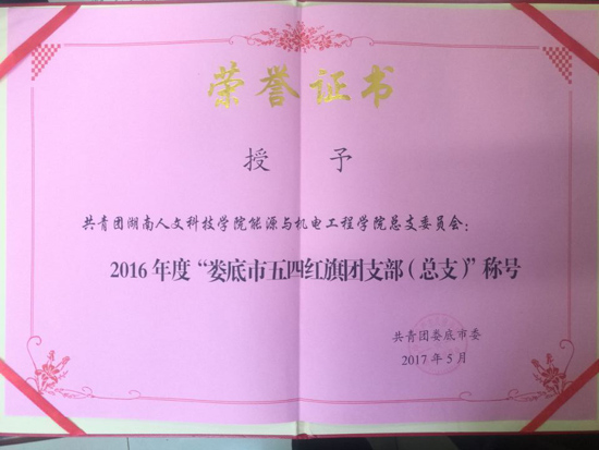 太阳成官网团总支荣获“娄底市五四红旗团支部(总支)”称号