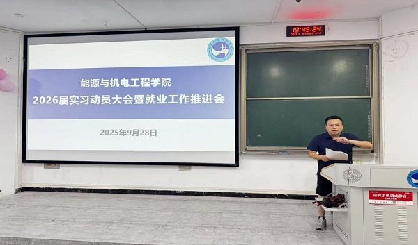 为切实做好 2026 届学生实习与就业工作,帮助学生明确实习目标、把握就业方向,近日,能源与机电工程学院于2025年9月28日晚上7点半在致远楼219召开 2026 届实习动员大会暨就业工作推进会。