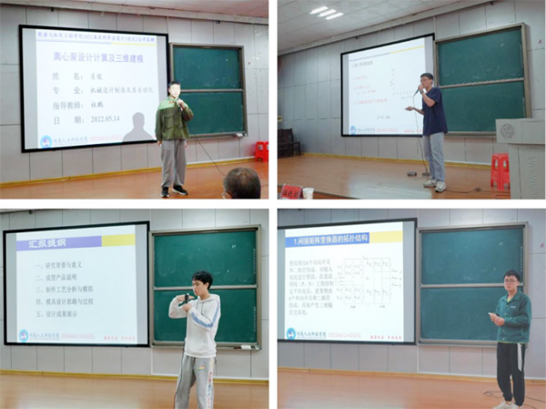 机械专业的肖俊、能动专业的王平、材控专业的卿美君和自动化专业的罗锃同学在答辩中