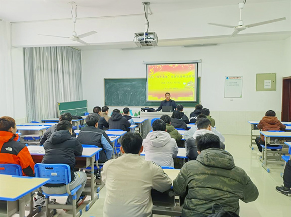 图:教师党员胡东博士为学生党员作“四个表率”的专题报告