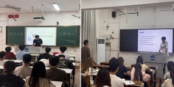本次主题班会以“全覆盖、重实效”为目标,各班级紧扣专业特色,立足学生需求,创新活动形式,深化教育成效。2023 级自动化专业三班通过播放《诚信考试警示教育视频》,以真实鲜活的案例深刻剖析考试作弊的严重危害;2024 级能源与动力工程专业班级围绕 “诚信法规” 展开专业宣讲,紧密结合《学生手册》与法律法规,清晰界定诚信行为的边界与责任。其中,“诚信情景剧表演”尤为亮眼,同学们自编自演“助学贷款违约”等贴近生活的场景,在沉浸式互动中引发对诚信的深刻思考;“趣味问答”环节则以轻松有趣的方式巩固诚信知识,现场气氛热烈,学习热情高涨。