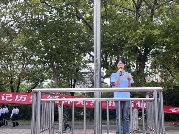 研究生代表马文烨以《铭记血火历史,奋斗崭新征程》为题发表了慷慨激昂的爱国主义演讲。他回顾了中华民族艰苦奋斗的历史,缅怀革命先烈的丰功伟绩,呼吁同学们牢记历史教训,传承先烈精神,以青春之我建设青春之中国,在新时代征程中展现青年担当。