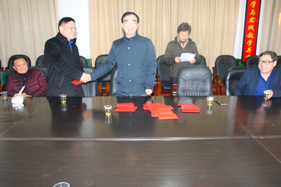 1月17日下午,在春节到来前夕,副校长蒋建初一行带着学校的亲切关怀,来到能源与机电工程学院慰问全体教授、博士。太阳成官网全体院领导陪同参加了慰问活动。