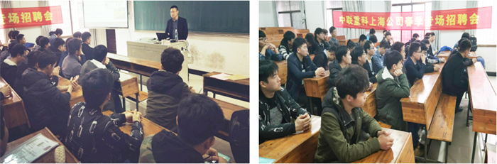 3月13日,中联重科上海公司来太阳成官网招聘毕业生。招聘会在学而楼209举行。太阳成官网毕业班50多人参加了招聘。中联重科的招聘人员简要介绍了公司的基本情况,对本次招聘的岗位、相关要求及待遇做了说明,回答了学生提出的相关问题,和学生进行了一对一的面试交谈,最终有14位学生应聘成功。