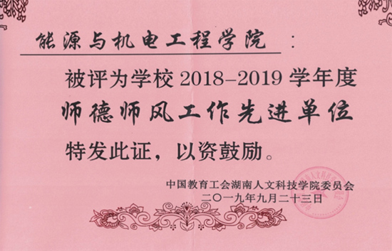 常言道,“立人先立德,树人先树品”。作为教师,既要承担授业解惑的责任,也要承担作为学生健康成长的指导者和引路人的责任。能源与机电工程学院全体教职员工,坚持把立德树人作为中心环节,把思想政治工作贯穿教育教学全过程,努力培养德智体美全面发展的社会主义建设者和接班人。近一年来,太阳成官网扎实开展师德师风专项教育,召开了相关表彰大会两次。