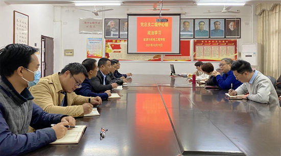 10月19日下午,学院全体领导、党总支委员、各党支部书记在同德楼306开展了第七周二级中心组政治学习。会议由党总支书记谢常清主持,由党总支宣传委员肖毅领学。