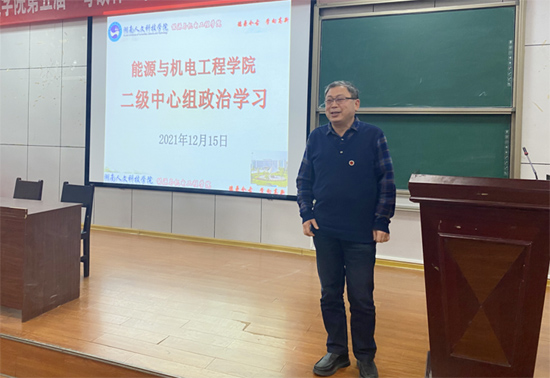 2021年12月15日下午,学院召开了第十五周二级中心组政治学习,学院领导、党总支委员、各党支部书记参加了会议。会议由党总支书记谢常清主持,副院长伍铁斌领学。