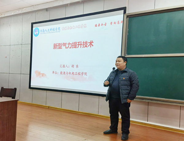 2022年10月12日下午,能源与机电工程学院举办教授博士系列学术报告,胡东院长做了题为《新型气力提升技术》的学术报告。报告由机械设计制造及其自动化教研室主任林鹏博士主持,部分教师代表和机械专业2022级全体学生及部分教师代表聆听了讲座.