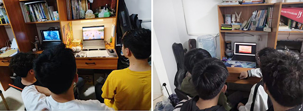 (高年级同学在宿舍认真观看视频)