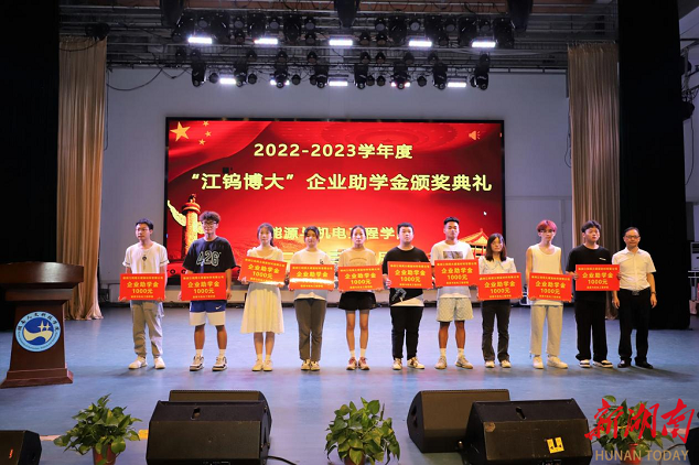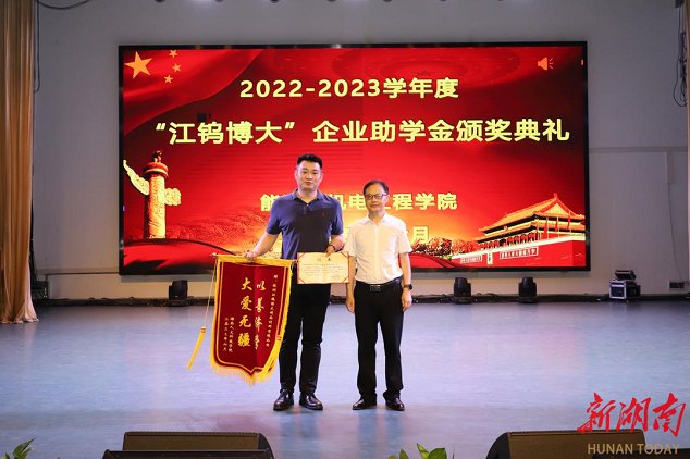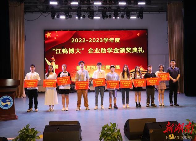 湖南日报·新湖南客户端6月15日讯(通讯员 邓景文 石海 胡东)6月11日晚,44118太阳成城集团能源与机电工程学院举办2022-2023学年“江钨博大”企业助学金颁奖典礼。44118太阳成城集团党委副书记李军林、株洲江钨博大硬面材料有限公司总经理马遥、副总经理李鹏、能机学院全体党政班子成员、学工办全体辅导员、教师代表及获资助学生参加颁奖仪式。仪式由学院党总支副书记石海主持。