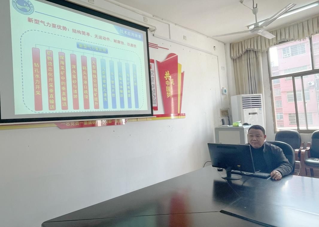 胡东从技术应用背景、主要工作内容、技术研发成果和推广应用情况、政策支持情况和发展规划目标等六个方面向参会人员汇报了自振气力泵成套装备关键技术研究情况,重点阐述了自振气力泵的技术特点、核心优势和应用领域。该技术目前已得到中国工程院、省科技厅、娄底市政府等社会关注和政策支持。他还强调政校企合作的必要性和迫切性,水利疏浚、近海挖沙、深海采矿属于民生工程,政府引导是关键,企业主导是重点,必须有效提升政企参与感,共建长期信任机制。