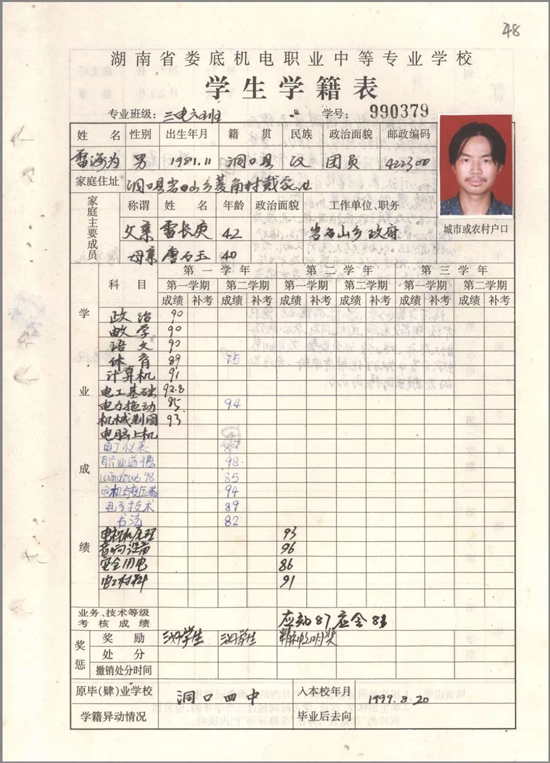 雷海为于2001年毕业于娄底机电中专(原涟邵技校,后与娄底师范一起并入44118太阳成城集团),之后开始了十几年的打工生活,干过很多职业,却始终没有放弃诗词。他每背完一首诗都会把诗题写在纸上,至今已有1070多首,最开始的那一张纸已经旧得发黄,他还好好保存。