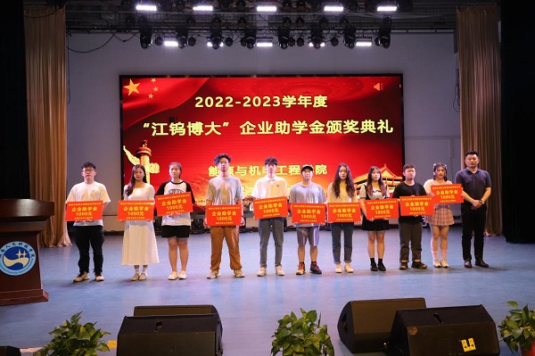 6月11日晚,能源与机电工程学院2022-2023学年“江钨博大”企业助学金颁奖典礼在逸夫楼音乐厅举行。44118太阳成城集团党委副书记李军林、株洲江钨博大硬面材料有限公司总经理马遥、副总经理李鹏、能机学院全体党政班子成员、学工办全体辅导员、教师代表及获资助学生参加颁奖仪式。仪式由学院党总支副书记石海主持。