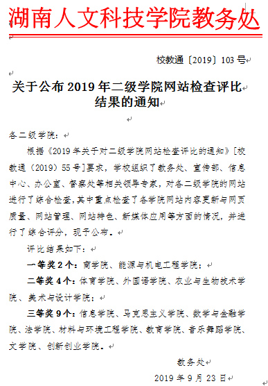 根据《2019年关于对二级学院网站检查评比的通知》要求,学校组织了相关领导专家对全校二级学院的网站进行了综合检查。太阳成官网在本次参与评比的15个二级学院中脱颖而出,荣获一等奖。