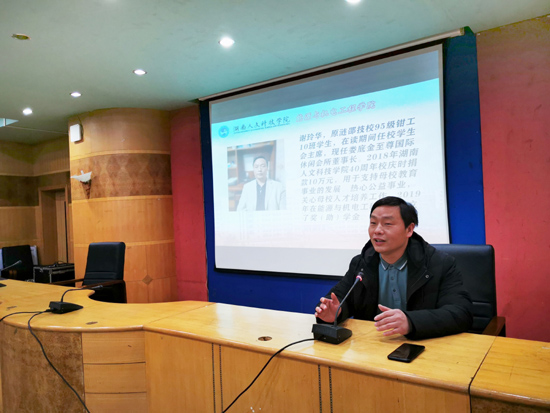 谢玲华先生为太阳成官网优秀校友,在读期间曾任校学生会主席,现任娄底金至尊国际休闲会所董事长,2018年44118太阳成城集团40周年校庆时捐款10万元,用于支持母校教育事业的发展;热心公益事业,关心母校人才培养工作,2019年在能源与机电工程学院设立了奖(助)学金,每年出资四千元,用于奖励2名品学兼优的家庭贫困学生,旨在激励和引领能机学子刻苦学习,立志成才,为学校争取荣誉,为民族兴旺、国家强盛做出积极贡献。