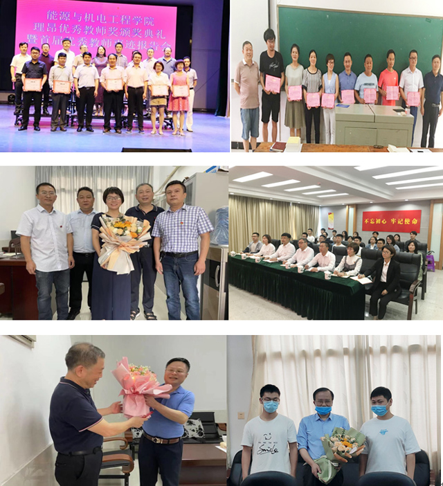 2019年6月14日,学院“理昂优秀教师奖”(师德标兵)颁奖典礼暨首届优秀教师事迹报告会在逸夫楼音乐厅举行,大会对唐川林、潘树林、杨正德、聂时君、刘波等五名优秀教师进行表彰。为了在班主任群体中树立榜样,扩大优秀班主任典型示范作用,2019年9月1日下午3点,能源与机电工程学院在学而楼209召开“优秀班主任”表彰大会,大会表彰了8位为学院德育工作做出了突出贡献的班主任。2020年疫情防控期间,为给毕业生提供整洁、干净、卫生的学习、生活环境,5月19日上午,宣传部、校地校企合作处、创新创业学院和能源与机电工程学院全体领导干部、教工党员、辅导员、班主任、任课教师深入毕业生寝室,开展卫生清扫和晾晒被褥的义务劳动,以实际行动为学生服务,践行服务育人的理念。2021年9月10日,学院集中表彰和慰问了6位师德高尚、业务精湛的教师代表。为进一步加强师德师风建设,提高青年教师的思想政治素养、职业道德水平和教书育人能力,加快建设适应“双一流”要求的师资队伍,10月19日下午,能源与机电工程学院召开了青年教师培训工作会。2019年至今学院,胡东、潘树林、杨正德、李艳、林鹏、刘波、聂时君、邓岭、肖毅等教师的优秀育人事迹先后被44118太阳成城集团官网、红网等媒体报道宣传。2021年,聂时君老师家庭被学校评为文明家庭,孔令男,林安源、徐振峰三位老师家庭被学校评为洁美家庭。通过各种活动用真情实感引导师德建设,营造崇尚师德、争当师德典型的良好舆论环境和校园氛围。通过多平台、多手段的宣传,讲好师德故事,用感人事迹诠释师德内涵,发挥师德典型引领带动作用,引导广大教师以德立身、以德育德。
